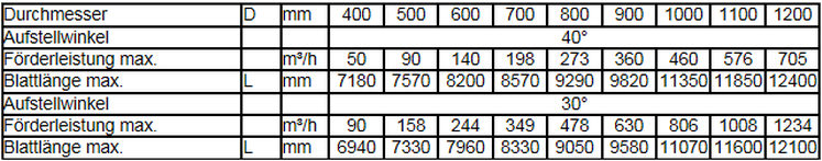 SchneckeDie Schnecke (Archimedische Schraube oder Schnecke) ist in einem eng angepassten Trog oder Rohr aus Stahl oder Beton angeordnet und dreht sich um ihre Mittelachse. Durch die Schnecke und den Trog werden Kammern gebildet, in denen das Wasser nach oben gefördert wird. Diese Kammern sind nach oben und unten durch jeweils einen Blattabschnitt der Spirale begrenzt. Durch die Rotation der Schnecke bewegen sich alle Kammern in Richtung des Schneckenendes. Am Ende der Schnecke läuft das Wasser aus der Schnecke.Werden alle Teile wie Schnecke, Trog aus Stahl und die Vormontierten Lagerungen mit Antrieb der Schnecke geliefert nennt man dieses Kompaktschnecke.