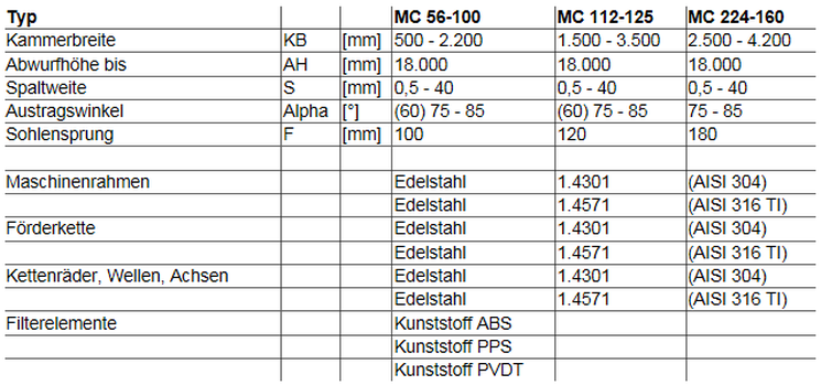 → Hierdurch resultieren geringe Betriebs- und Wartungskosten - Filterband besteht aus einzelnen Blöcken