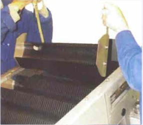 Durch dieses Verfahren ist die optimale Reinigung des Wassers und des Filterbandes garantiert. Der patentierte Filterbandaufbau ermöglicht den Ausbau des Blockes nach vorne.